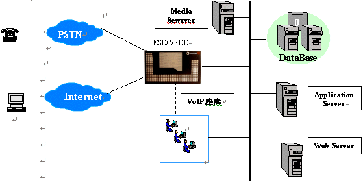 目前, ESE/VSE的主要應用在呼叫中心平臺,PHS增值業(yè)務平臺,如短消息中心,預付費業(yè)務,及其他各種信息處理平臺。