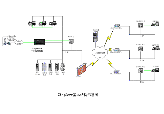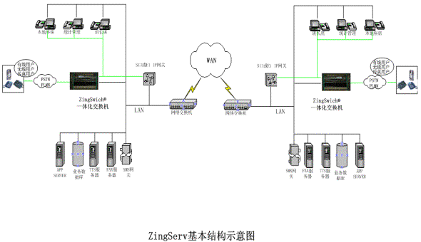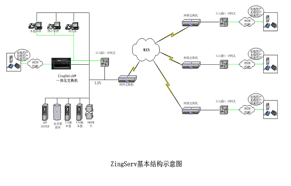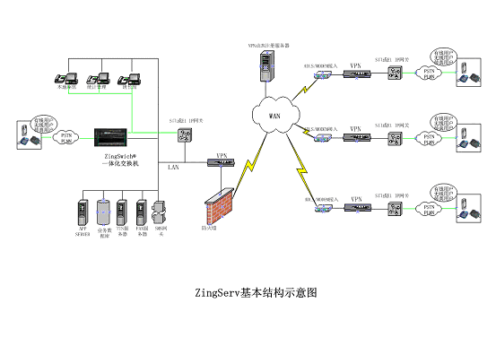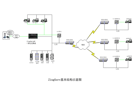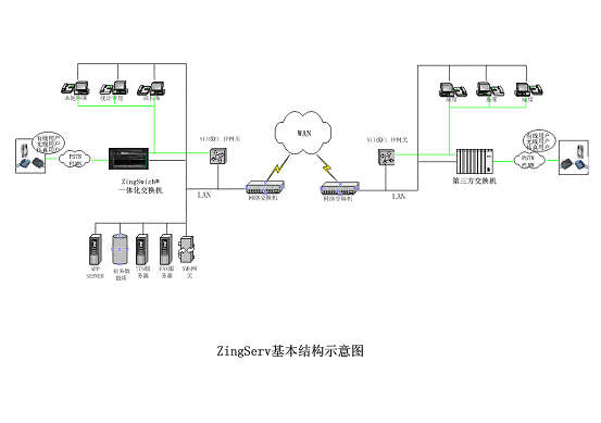 對于有個別點已經(jīng)購買了第三方交換機,需要與ZingSwitch®交換機通過VoIP組網(wǎng)的方案。