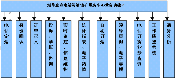隨著國內(nèi)煙草專賣體制市場化進程的不斷推進,在煙草全行業(yè)建立以"電話訂貨、網(wǎng)上配貨、電子結(jié)算、現(xiàn)代物流"為基本特征的現(xiàn)代流通體制已經(jīng)成為必然的選擇,實現(xiàn)煙草專賣體制下舊的和落后的營銷體制向現(xiàn)代營銷體制的轉(zhuǎn)變。煙草企業(yè)建立電話訪銷/客戶服務(wù)系統(tǒng)的目標是最大程度地提高客戶的滿意度,其核心是實現(xiàn)高水平的建設(shè)水平,提高企業(yè)對市場的控制力,最終保證企業(yè)擁有持續(xù)的競爭力和良好的贏利。