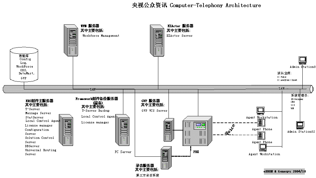 由于簽約時距離2005年春節(jié)聯(lián)歡晚會只有不足2個月的時間,勝利完成春節(jié)聯(lián)歡晚會時的電話服務工作就成為CCTV公眾資訊中心和eSOON的最大目標。因為用戶采用了成熟的eSOON解決方案(CTI-Genesys ERS;IVR-Genesys GVP;CRM-eSOON EZactor),所以整個系統(tǒng)在短短一個月內(nèi)就完成了上線工作。在經(jīng)過詳細的測試及全面的人員培訓后整個系統(tǒng)經(jīng)受住了春節(jié)聯(lián)歡晚會的考驗,圓滿完成了晚會的電話、短信的支撐工作。徹底擺脫了前幾年系統(tǒng)不堪應付突發(fā)大量呼叫的窘境,提升了CCTV公眾資訊有限公司的服務品質(zhì)。