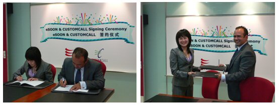 2007年5月16日,億迅中國軟件有限公司北京分公司的會(huì)議室里花團(tuán)錦簇,eSOON與Customcall公司的簽約儀式在和諧融洽的氣氛中進(jìn)行。雙方先對(duì)未來的合作發(fā)展進(jìn)行了討論,10點(diǎn)58分,億迅公司CEO李冰影女士與澳洲Customcall