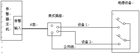 電源、UPS設(shè)備的告警信號從告警器后面板告警輸入接口輸入,通過四蕊電話線相連。一臺主機可收集五種告警。連接距離可達(dá)5公里。