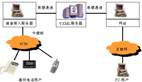 IVIP以VoiceXML為核心技術(shù)。VoiceXML是基于XML的國際標準語音可擴展標識語言,它象HTML定義圖形化網(wǎng)頁界面一樣定義了語音界面。