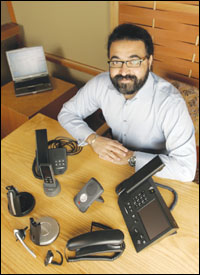 舉例來說,微軟希望在用戶向?qū)Ψ桨l(fā)送即時(shí)信息或電子郵件之前,PC軟件能夠在條件允許的情況下使你看到對(duì)方,即所謂的“一鍵(one clike)實(shí)現(xiàn)通信”(即如果你要呼叫對(duì)方,只須在他們的名字上輕點(diǎn)鼠標(biāo))。同時(shí),微軟也開始充分利用電話,專門研發(fā)了代號(hào)名為“Tanjay”的語(yǔ)言設(shè)備。這個(gè)形似智能電話的設(shè)備通過將軟件應(yīng)用于語(yǔ)音設(shè)備中,使語(yǔ)音成為豐富多樣的PC協(xié)作體驗(yàn)的一部分。