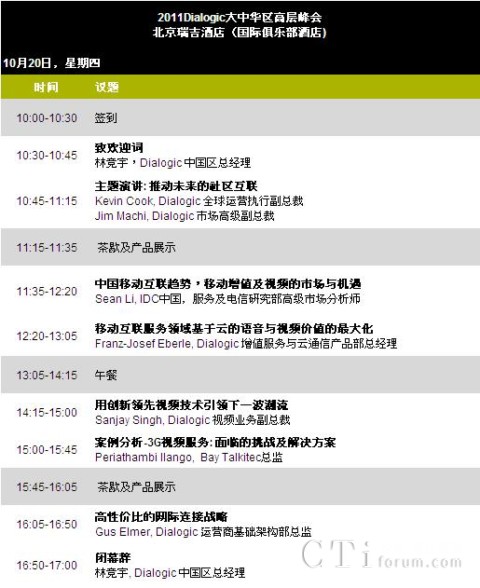 “Dialogic中國(guó)客戶(hù)高層峰會(huì)”10月20日在京舉行 2011-10-17