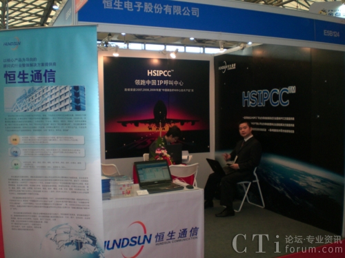 CTI論壇(ctiforum)11月20日消息(記者 張塵):近日,2009中國國際工業(yè)博覽會(huì)在上海新國際博覽中心隆重召開。恒生通信攜其自主知識產(chǎn)權(quán)的HSIPCC(Hundsun IP Callcenter,恒生IP呼叫中心)核心平臺亮相本屆工博會(huì)。受到了與會(huì)各界代表的廣泛關(guān)注。