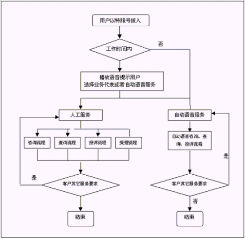 。。自動語音應(yīng)答負(fù)責(zé)在用戶接入到客戶服務(wù)中心時,提供自動的語音導(dǎo)航服務(wù),實際上是一個"自動的業(yè)務(wù)代表"。通過該系統(tǒng),顧客可以利用音頻按鍵電話或語音輸入信息,從該系統(tǒng)中獲得預(yù)先錄制的數(shù)字或合成語音信息。 管理維護(hù)子系統(tǒng)監(jiān)控操作員話務(wù),以實現(xiàn)對話務(wù)員進(jìn)行考察,控制話務(wù)質(zhì)量、提高服務(wù)。