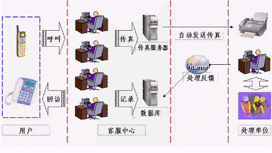本呼叫中心系統(tǒng)可通過電話,手機(jī),傳真等各種接入手段接受用戶的投訴,并及時(shí)處理或通過特定的通信渠道轉(zhuǎn)交給處理部門處理,同時(shí)可根據(jù)處理的情況及時(shí)回復(fù)用戶,做到服務(wù)的閉環(huán)。