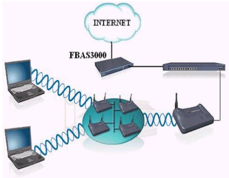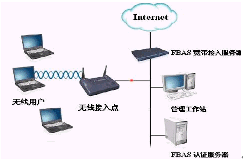 移動(dòng)用戶通過(guò)自身的無(wú)線網(wǎng)卡傳遞信息到熱點(diǎn)接收器上,熱點(diǎn)接收器連接到交換機(jī)(是為了能具有更好的可拓展性),交換機(jī)連接到華夏科技FutureWorks寬帶計(jì)費(fèi)系統(tǒng)的FBAS接入服務(wù)器上,通過(guò)接入服務(wù)器連接到INTERNET.這里的FBAS3000系列的寬帶接入服務(wù)器采用的是一體機(jī)的模式,接入,認(rèn)證,計(jì)費(fèi)等一系列服務(wù)均安裝在FBAS里,這樣可以簡(jiǎn)化網(wǎng)絡(luò)結(jié)構(gòu)。對(duì)FBAS的操作是通過(guò)WEB頁(yè)面來(lái)進(jìn)行設(shè)置維護(hù)的, 而不用再接入其它的服務(wù)器或管理計(jì)算機(jī)了。這種網(wǎng)絡(luò)結(jié)構(gòu)對(duì)于那些要求操作簡(jiǎn)單,維護(hù)便利的客戶是一種非常直接有效的方案。