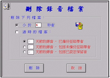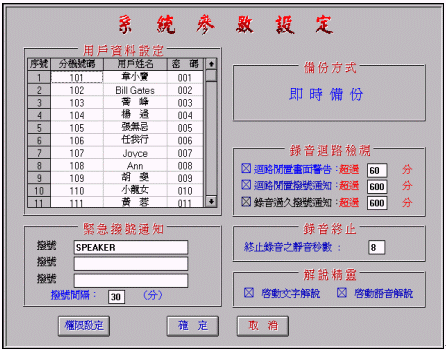 僅限擁有最高操作權(quán)限碼之維護(hù)人員才能使用。當(dāng)系統(tǒng)維護(hù)需要此功能,隨時可以人工手動的方式刪除硬盤內(nèi)的語音檔案。