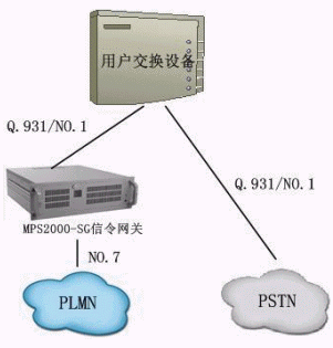 用戶原有的交換設(shè)備不做任何改動(dòng),只將原有的中繼通過原有信令(Q.931/NO.1)與信令網(wǎng)關(guān)對接,再通過信令網(wǎng)關(guān)分別以不同的信令與PSTN和PLMN對接。