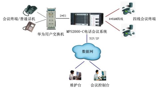 MPS2000-C通過(guò)四線(xiàn)接入POLYCOM的四線(xiàn)音頻會(huì)議終端,作為主會(huì)議室和幾個(gè)分會(huì)議室的會(huì)議終端。