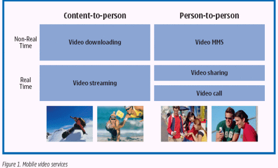 許多移動(dòng)運(yùn)營(yíng)商已經(jīng)引領(lǐng)并推出移動(dòng)視頻服務(wù),它正因視頻流和實(shí)時(shí)P-to-P高質(zhì)量通話的增加,逐步發(fā)展出更多的商機(jī)。ARC組織估計(jì),在2004年里,全世界的移動(dòng)視頻用戶數(shù)量將增至2400萬(wàn),而到2008年,將是10倍的增長(zhǎng),達(dá)到2億4700萬(wàn)。(摘自:ARC組織發(fā)表的《2003年-2008年,世界移動(dòng)視頻市場(chǎng)分析和戰(zhàn)略前景》)今天,大約有60個(gè)運(yùn)營(yíng)商是依據(jù)發(fā)布新聞和其它公共信息資源來(lái)推廣移動(dòng)視頻服務(wù),圖1展示了移動(dòng)視頻服務(wù)的概念框架。
