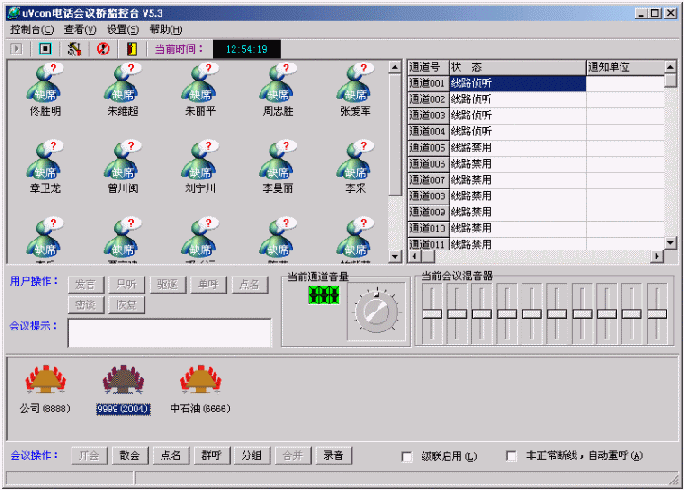 uVcon®音頻會議橋利用DSP(Digital Signal Processor數(shù)字信號處理器)技術和計算機技術,通過固定電話、移動電話或數(shù)字專線電話等通信設備采用約定的方式參加會議;與會者可以自由交談、自由發(fā)言;會議的召開過程簡單易行,快捷方便,節(jié)省會議辦公支出;同時,uVcon®會議橋產品的統(tǒng)一消息分發(fā)、地址簿等擴展增值功能,更有助于提高協(xié)同辦公和公眾服務效率。
