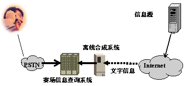 離線合成系統(tǒng)在用戶電話呼入前,將需要播放的文本信息預(yù)先轉(zhuǎn)換成語音文件存放在系統(tǒng)中,當(dāng)電話用戶呼入系統(tǒng)后,系統(tǒng)直接向用戶播放事先生成的語音文件。離線合成方式適用于作賽事快報、明星風(fēng)采、賽場花絮等公共信息類信息服務(wù)。