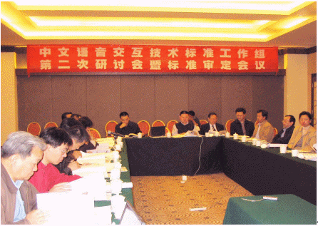 2005年10月24日,中文語(yǔ)音交互技術(shù)標(biāo)準(zhǔn)工作組在北京九華山莊召開(kāi)了"中文語(yǔ)音交互技術(shù)標(biāo)準(zhǔn)工作組第二次全體會(huì)議暨標(biāo)準(zhǔn)審定會(huì)議"。本次會(huì)議除了進(jìn)行標(biāo)準(zhǔn)工作組年度工作討論外,還進(jìn)行了兩項(xiàng)國(guó)家語(yǔ)音標(biāo)準(zhǔn)的審議。參加這次會(huì)議的代表除工作組全體成員單位外,還邀請(qǐng)了8位業(yè)界著名的語(yǔ)音和標(biāo)準(zhǔn)化專(zhuān)家參加對(duì)兩項(xiàng)國(guó)家標(biāo)準(zhǔn)的審議。其中在本次會(huì)議上待審定的兩項(xiàng)國(guó)家標(biāo)準(zhǔn)為安徽中科大訊飛信息科技有限公司提出的《中文語(yǔ)音合成系統(tǒng)通用技術(shù)規(guī)范》(20030188-T-339)和中國(guó)科學(xué)院自動(dòng)化研究所提出的《中文語(yǔ)音識(shí)別系統(tǒng)通用技術(shù)規(guī)范》(20030190-T-339)。