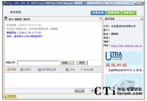 強(qiáng)訊CallThink呼叫中心服務(wù)于天語(yǔ)手機(jī) 2009-11-19