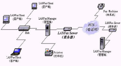 通過將傳真技術(shù)與網(wǎng)絡(luò)技術(shù)相集成,局域網(wǎng)傳真服務(wù)器使用戶能夠方便地通過內(nèi)部的局域共享傳真功能,從而達(dá)到減少傳真設(shè)備投資,提高辦公效率,節(jié)約紙張的目的。九聯(lián)公司推出的局域網(wǎng)傳真服務(wù)器套件由LANFAX SERVER(局域網(wǎng)傳真服務(wù)器)、LANFAX MANAGER(服務(wù)器管理軟件)和LANFAX CLIENT(客戶端軟件)三部分構(gòu)成。LANFAX SERVER 負(fù)責(zé)傳真通信和自動路由的實(shí)現(xiàn):LANFAX MANAGER負(fù)責(zé)服務(wù)器端的傳真管理和用戶管理;LANFAX CLIENT負(fù)責(zé)傳真的撰寫和通過LANFAX SERVER收發(fā)傳真。