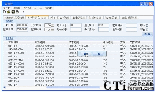 坐席管理/坐席錄音管理/呼叫報(bào)表管理/現(xiàn)場(chǎng)管理/訂單管理/咨詢(xún)管理/知識(shí)庫(kù)管理。