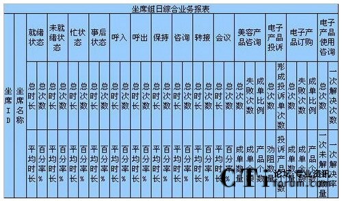 c)如果想對這個組的坐席進(jìn)行整體的坐席狀態(tài)進(jìn)行考核,以便確定工作負(fù)荷、績效考核,形成每天、每月、每季度、每年、按組、按技能,平均、總計、總合、最大、最小數(shù)據(jù)比較的表格、圖表,對不起要么你放棄這個想法,要么你重新開發(fā)軟件進(jìn)行計算。