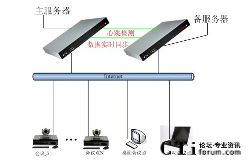 一般情況,服務(wù)器出現(xiàn)故障,如技術(shù)人員在現(xiàn)場的情況下,恢復(fù)服務(wù)器正常至少需要10分鐘、幾小時(shí)甚至更長時(shí)間。從實(shí)際經(jīng)驗(yàn)上看,除非是簡單地重啟服務(wù)器(可能隱患仍然存在),否則往往需要幾個(gè)小時(shí)以上。而如果技術(shù)人員不在現(xiàn)場,則恢復(fù)服務(wù)的時(shí)間就更長了。因此對于網(wǎng)絡(luò)視頻會(huì)議實(shí)時(shí)性來說,用戶是很難容忍這樣長時(shí)間的服務(wù)中斷。為了有效的解決這個(gè)問題,華平率先推出AVCON TNC雙機(jī)熱備系統(tǒng)(Two-Node Cluster),避免長時(shí)間的服務(wù)中斷,保證會(huì)議系統(tǒng)長期、可靠的運(yùn)行,保障用戶重要會(huì)議的順利完整召開。