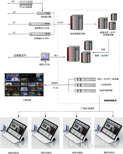 網(wǎng)絡(luò)廣播既有傳統(tǒng)廣播電視靈活生動的表現(xiàn)形式,又有互聯(lián)網(wǎng)按需獲取的交互性,如何組織、存儲、管理、發(fā)布信源,充分利用電視臺豐富的資源,提供個性化的服務(wù),是辦好電視媒體網(wǎng)站的關(guān)鍵。網(wǎng)絡(luò)與電視互利互惠、優(yōu)勢互補將是當(dāng)前電視與網(wǎng)絡(luò)的最佳狀態(tài)。放眼世界和未來,可以預(yù)見:在全球邁向“信息時代”的今天,電視將與網(wǎng)絡(luò)在競爭中走向不斷融合、創(chuàng)新進(jìn)而達(dá)到新的繁榮。目前開辦網(wǎng)絡(luò)電視臺是各級廣電單位最為行之有效的解決方案,并成功地應(yīng)用于實際。下文筆者主要將在構(gòu)建網(wǎng)絡(luò)電視臺時的高清TS流直播技術(shù)難題,以及實際應(yīng)用中的解決方案,與各位同行共享。