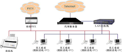 。。某中小企業(yè),無分支機構(gòu),現(xiàn)時有一個由傳統(tǒng)PBX構(gòu)建的電話系統(tǒng)和一個以太局域網(wǎng),兩者相互獨立,局域網(wǎng)通過一臺代理服務(wù)器用以太網(wǎng)或ADSL方式接入Internet。企業(yè)的語音通信由電話系統(tǒng)實現(xiàn);員工的日常工作需要使用計算機以及多種局域網(wǎng)和Internet服務(wù)(如文件共享、網(wǎng)絡(luò)打印、瀏覽網(wǎng)頁、收發(fā)郵件等),這些服務(wù)通過局域網(wǎng)提供,目前,在企業(yè)的經(jīng)營管理上還沒有應(yīng)用相關(guān)的業(yè)務(wù)系統(tǒng)(如工作流、ERP、CRM等)。