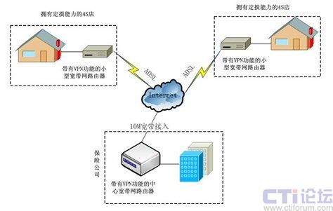 在保險(xiǎn)公司數(shù)據(jù)交換控制中心配置一臺(tái)具有VPN功能的中心寬帶網(wǎng)路由器,每條ADSL配置一個(gè)具有VPN功能的小型寬帶網(wǎng)路由器,并通過設(shè)置路由器即可成功建立起VPN網(wǎng)絡(luò)。這種網(wǎng)絡(luò)結(jié)構(gòu)不但有效的節(jié)約了成本,而且日后系統(tǒng)的擴(kuò)容的成本也非常的低,每增加一個(gè)點(diǎn)只需要申請一條ADSL就可以了。
