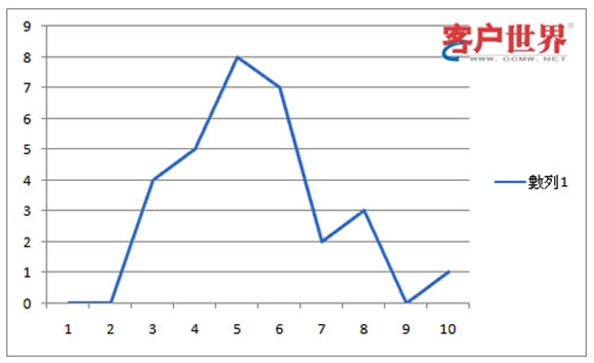 首先我們看到常態(tài)圖對呼叫中心分析的運(yùn)用。利用最小方差管理法時,經(jīng)常要制作常態(tài)圖來進(jìn)行分析。常態(tài)圖其實是一張很簡單的圖,例如你統(tǒng)計了你同事每天到公司上班所需的時間:5分鐘之內(nèi)的,有2個;10分鐘的有4個;15分鐘的有6個;20分鐘的有10個;25分鐘的有8個;30分鐘的有5個;35分鐘的有3個;40分鐘的有2個;超過40分鐘的有1個。這時你畫一張常態(tài)圖,就會得到下面的圖(縱坐標(biāo)代表人數(shù);橫坐標(biāo)代表所花時間):