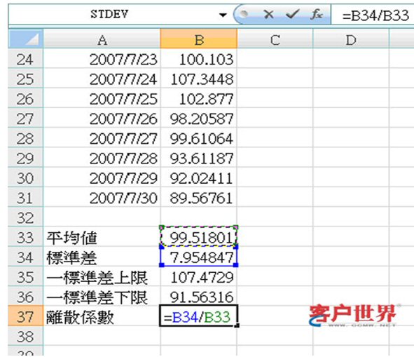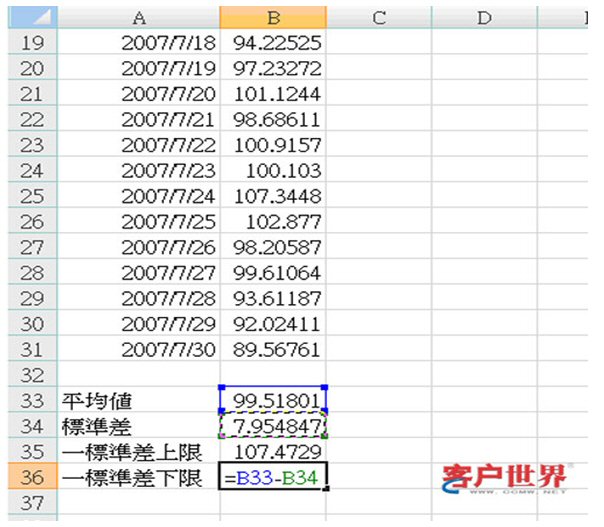 圖說:B35是一個標(biāo)準(zhǔn)差上限,而B36是一個標(biāo)準(zhǔn)差下限