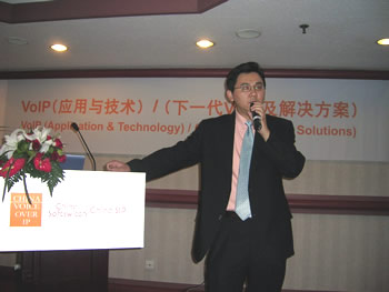 2005年5月19日下午,海狼科技的首席執(zhí)行官----Danny Lu博士,在長(zhǎng)城飯店的蘭花廳舉辦了"X彩虹軟交換:下一代新電信的完整解決方案"專題演講會(huì),吸引了眾多運(yùn)營(yíng)商及服務(wù)商參加,在演講會(huì)上,鹿博士闡述了VOIP在美國(guó)的發(fā)展與中國(guó)的發(fā)展趨勢(shì)。并詳盡介紹了"X彩虹軟交換"的完整商務(wù)功能及運(yùn)營(yíng)方案,并與參會(huì)者積極互動(dòng)式交流,解答了眾多參會(huì)者的問(wèn)題。