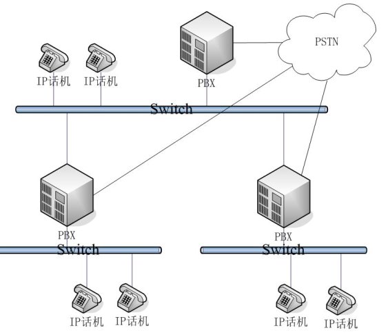- 復雜網絡結構:適用于大型企業(yè)。在其一端的網絡結構中有多臺PBX,內部通訊時可能需要經過多個PBX。