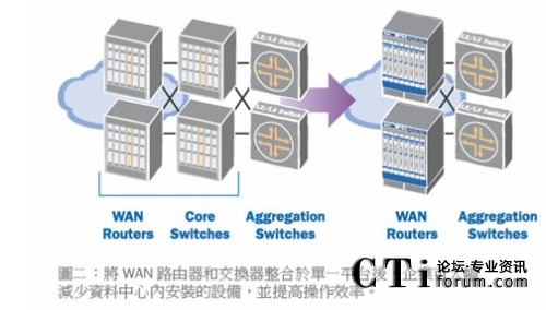 今天,許多WAN服務(wù)是由以太網(wǎng)設(shè)備提供的,因此必須在廣域網(wǎng)和局域網(wǎng)設(shè)備之間進(jìn)行介質(zhì)轉(zhuǎn)換,而新一代交換機(jī)則可省去這一步驟。許多新式交換平臺可提供穩(wěn)定的路由功能,并支持OC-12和其他廣域網(wǎng)接口,使得IT人員能夠?qū)V域網(wǎng)路由和局域網(wǎng)核心交換功能全部整合到下一代交換機(jī)平臺中。通過扁平化的網(wǎng)絡(luò)架構(gòu),企業(yè)可減少資本支出和操作費(fèi)用,同時(shí)還可降低網(wǎng)絡(luò)復(fù)雜度并提升正常運(yùn)營的時(shí)長。