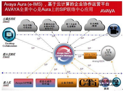 - 當(dāng)其他廠商還在爭(zhēng)論公有云和私有云的優(yōu)劣時(shí),Avaya已經(jīng)開始部署企業(yè)的私有云—Avaya Aura 和運(yùn)營(yíng)商的公有云之間如何和諧共處;企業(yè)用戶的統(tǒng)一通信功能完全基于”按需服務(wù)激活”模式;