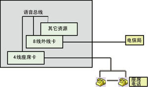 SLIC和DAA模塊通常有完全不同的引腳結(jié)構(gòu),不同類型通道模塊間不能互換,從而使通道類型在板卡上不能任意配置,各種類型通道數(shù)量由廠家在設(shè)計(jì)時(shí)決定,這點(diǎn)對(duì)語音平臺(tái)卡來說是致命的。圖2顯示了用此類板卡構(gòu)筑一個(gè)8外線+3座席的CTI系統(tǒng),用戶需要增加一個(gè)外線仍需增加外線板卡。從某種意義來說,此類語音卡只能是通道數(shù)量可變的語音卡,并不是真正意義上的語音平臺(tái)卡。