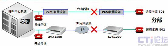 斷網(wǎng)應(yīng)對(duì)機(jī)制:      傲威通信采用AVX1200作為中心端和遠(yuǎn)程坐席端的復(fù)接設(shè)備,采用Hotline形式,只要遠(yuǎn)程坐席員摘機(jī),中心端的呼叫中心交換機(jī)立刻接到摘機(jī)指令。當(dāng)有呼叫到來(lái),遠(yuǎn)程坐席可像本地坐席一樣接聽電話,無(wú)任何差異。