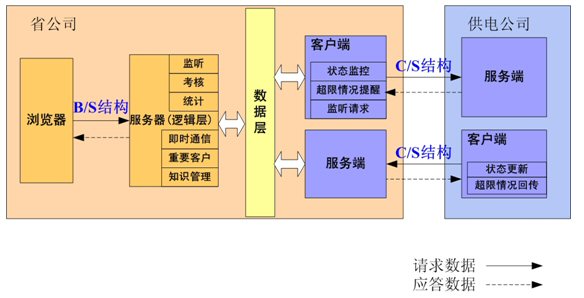 客服監(jiān)管系統(tǒng)中省級公司部分通過接口層與供電公司的客戶服務(wù)系統(tǒng)交換數(shù)據(jù)。通過業(yè)務(wù)邏輯層對接收到的數(shù)據(jù)進(jìn)行處理、展現(xiàn),并且處理要發(fā)送的數(shù)據(jù),在此實(shí)現(xiàn)所有的業(yè)務(wù)邏輯。供電公司部分負(fù)責(zé)提供歷史的和當(dāng)天的各種業(yè)務(wù)數(shù)據(jù)。整個結(jié)構(gòu)中也考慮到了數(shù)據(jù)中心,數(shù)據(jù)中心建立后將定期導(dǎo)入各供電公司客戶服務(wù)系統(tǒng)的歷史數(shù)據(jù),并提供給省級公司包括監(jiān)管系統(tǒng)在內(nèi)的各種應(yīng)用系統(tǒng)使用。
