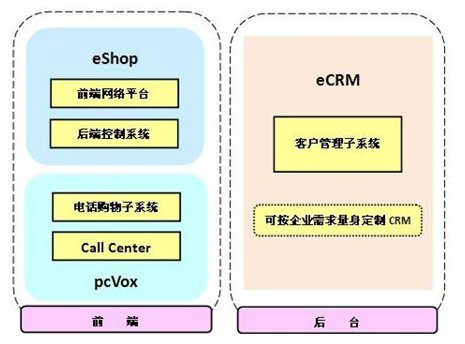 易宣科技eShop電子商務(wù)綜合系統(tǒng)是針對目前中小企業(yè)的電子商務(wù)需求而設(shè)計(jì)的,是一個(gè)綜合了多個(gè)功能模塊的企業(yè)電子商務(wù)平臺體系。它整合了易宣科技的eShop網(wǎng)絡(luò)購物平臺系統(tǒng)、pcVox訊猛龍呼叫中心系統(tǒng)、及eCRM客戶管理系統(tǒng)。這三大組成模塊可以獨(dú)立應(yīng)用,也可以綜合運(yùn)用到中小企業(yè)的信息化建設(shè)中去,可以最大程度、在最短的時(shí)間內(nèi)、用最低的成本幫助企業(yè)建立起一套完備的電子商務(wù)綜合系統(tǒng),是現(xiàn)代社會中企業(yè)進(jìn)行網(wǎng)絡(luò)營銷的利器。