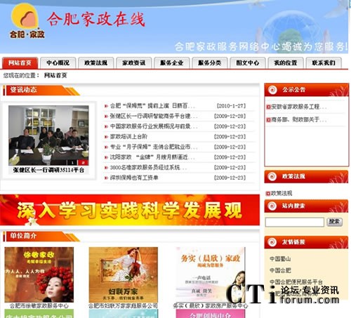 CTI論壇(ctiforum)3月5日消息(記者 楊毅):2009年末,由深圳市深海捷科技有限公司(簡(jiǎn)稱“深海捷”)提供技術(shù)支持的合肥家政服務(wù)網(wǎng)絡(luò)中心正式上線。合肥家政網(wǎng)絡(luò)中心是安徽省商務(wù)部第一批批準(zhǔn)建立的家政服務(wù)網(wǎng)絡(luò)中心,合肥家政網(wǎng)絡(luò)中心的建立為安徽全省的家政服務(wù)建設(shè)提供了極大地參考標(biāo)準(zhǔn)。市民足不出戶,通過(guò)登錄合肥家政服務(wù)網(wǎng)絡(luò)中心官方網(wǎng)站:http://web1.35114.cc/WebSite/51628/index.shtm即可找到滿意的家政服務(wù)。