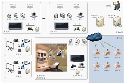 迅流高清手術(shù)示教系統(tǒng)依托專項(xiàng)網(wǎng)絡(luò),采用硬件MCU組建視頻會(huì)議系統(tǒng)服務(wù)器,專業(yè)直播點(diǎn)播服務(wù)器組件基于互聯(lián)網(wǎng)的直播和基于用戶要求的點(diǎn)播編輯系統(tǒng),觀摩室和手術(shù)室采用視頻終端、高清采集終端、移動(dòng)高清終端等眾多高清設(shè)備共同組成高清交互展示平臺(tái)。