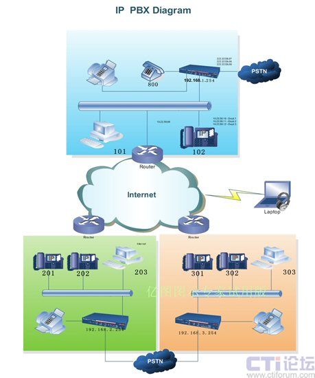 PBX接入網絡就意味著您的分支機構能夠完全拋棄PSTN直接通話。在此我們建議您使用專線接入方式并在分支機構間建立VPN已保證更好的通話質量和網絡安全性。