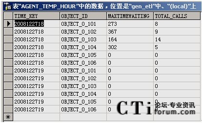 從報表數據庫的相應表中,可以看出報表需要統(tǒng)計的數據信息都以表單形式列出來。圖中的Time Key表示收集數據的具體時刻,object_id表示目標對象在配置數據庫中存儲的ID號。MaxTimeWaiting和Total_Calls屬性對應的是根據模板項要求統(tǒng)計的數據,分別為最大等待時間和內線呼叫總量。下面利用報表展現(xiàn)工具可以直接將該數據展示出來,生成需要的報表。