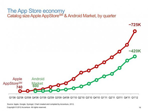 蘋果iOS與Google的Android在APP數(shù)量上的增長對(duì)比