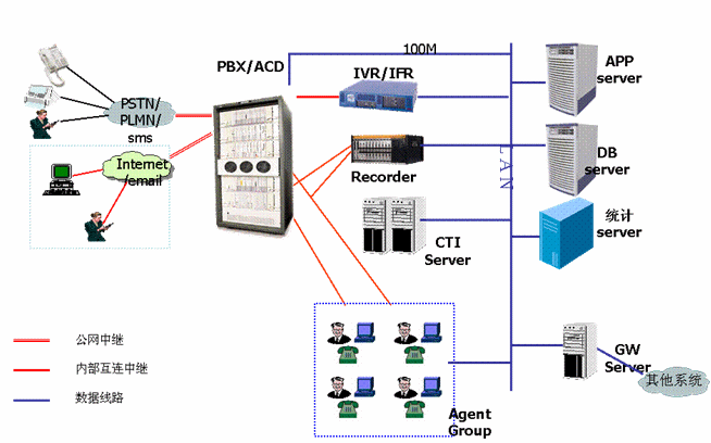 在建立呼叫中心前,廣州自來水公司只有覆蓋公司和各供水管理所的供水熱線系統(tǒng),該系統(tǒng)只有簡單的接入電話,沒有完善的呼叫中心功能,話務(wù)量承受能力小,接通率低,沒有統(tǒng)一的服務(wù)窗口和后臺(tái),統(tǒng)計(jì)功能也只能靠手工實(shí)現(xiàn)。為了更好的為廣大市民服務(wù),廣州市自來水公司決定取消原先供水熱線工作模式,由公司成立客戶服務(wù)中心集中管理,建立基于互聯(lián)網(wǎng)的呼叫中心,負(fù)責(zé)全市范圍內(nèi)客戶服務(wù),使客戶能夠通過各種資訊工具如電話、傳真、電子郵件、短信等方式從自來水公司獲取用水信息,并能實(shí)現(xiàn)業(yè)務(wù)申請、投訴、業(yè)務(wù)受理、業(yè)務(wù)咨詢、業(yè)務(wù)查詢等,采用回?fù)芗夹g(shù)實(shí)現(xiàn)客戶回復(fù)、客戶回訪、客戶調(diào)查等業(yè)務(wù)。