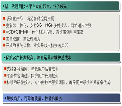 根據(jù)證券行業(yè)的特點,華為提供量身定制的證券業(yè)多媒體聯(lián)絡(luò)中心一體化解決方案。作為與客戶有效溝通交互的平臺,華為多媒體聯(lián)絡(luò)中心結(jié)合了電話、傳真、Email、Web和VoIP等現(xiàn)代通信手段,是實現(xiàn)客戶服務(wù)、銷售及市場推廣等多種目的的高效溝通渠道。基于計算機與通信集成(Computer