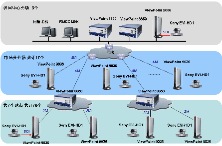 8650 高清MCU 6臺,ViewPoint 9036 720P高清終端57臺;省中心和青島局采用兩臺華為ViewPoint