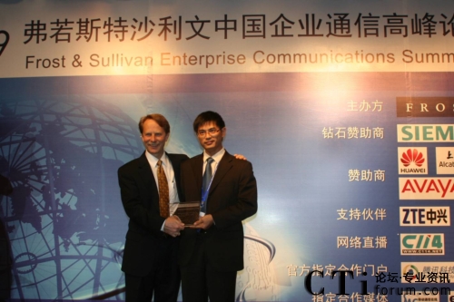 圖:獲得Frost &Sullivan“2009 統(tǒng)一通信解決方案創(chuàng)新獎”