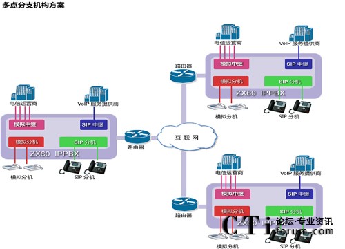 ZX60不僅具有本地電話(huà)分機(jī)接口,還運(yùn)行IP電話(huà)機(jī)遠(yuǎn)程注冊(cè),無(wú)論你若干個(gè)辦公室分布在何處,都可以打造成你內(nèi)部免費(fèi)通話(huà)的集團(tuán)電話(huà)通信系統(tǒng),節(jié)約你的內(nèi)部通信成本,提高辦公效率。
