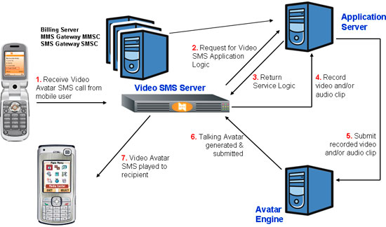 化身引擎 — 化身引擎的一個(gè)關(guān)鍵功能是接收來(lái)自應(yīng)用服務(wù)器的音頻片斷,并采用復(fù)雜的算法對(duì)語(yǔ)音消息和化身圖像的唇動(dòng)進(jìn)行同步,處理后的結(jié)果就是一段“正在說(shuō)話”的化身視頻。處理文件被發(fā)送回應(yīng)用服務(wù)器,在視頻SMS服務(wù)器存取這些視頻文件進(jìn)行播放之前,這些文件將被存放在應(yīng)用服務(wù)器上。