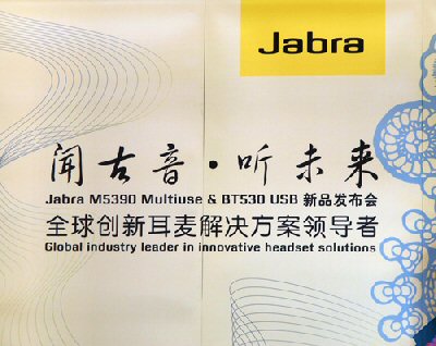 2008年10月21日,上海,來(lái)自丹麥的全球第一耳麥制造商GN大北歐在位于中山南路的老碼頭廣場(chǎng)內(nèi)為旗下新推出的兩款辦公耳麥產(chǎn)品—Jabra M5390 Multiuse 以及 BT530 USB 舉行了簡(jiǎn)約但不失新意的新品發(fā)布會(huì),別具一格的京劇元素為此次發(fā)布會(huì)增色不少;顒(dòng)當(dāng)天,GN大北歐亞太區(qū)業(yè)務(wù)總經(jīng)理 并 兼任 GN 大北歐全球副總裁的 Angela Wilde 女士出席了發(fā)布會(huì)并為新產(chǎn)品揭開(kāi)了神秘面紗。